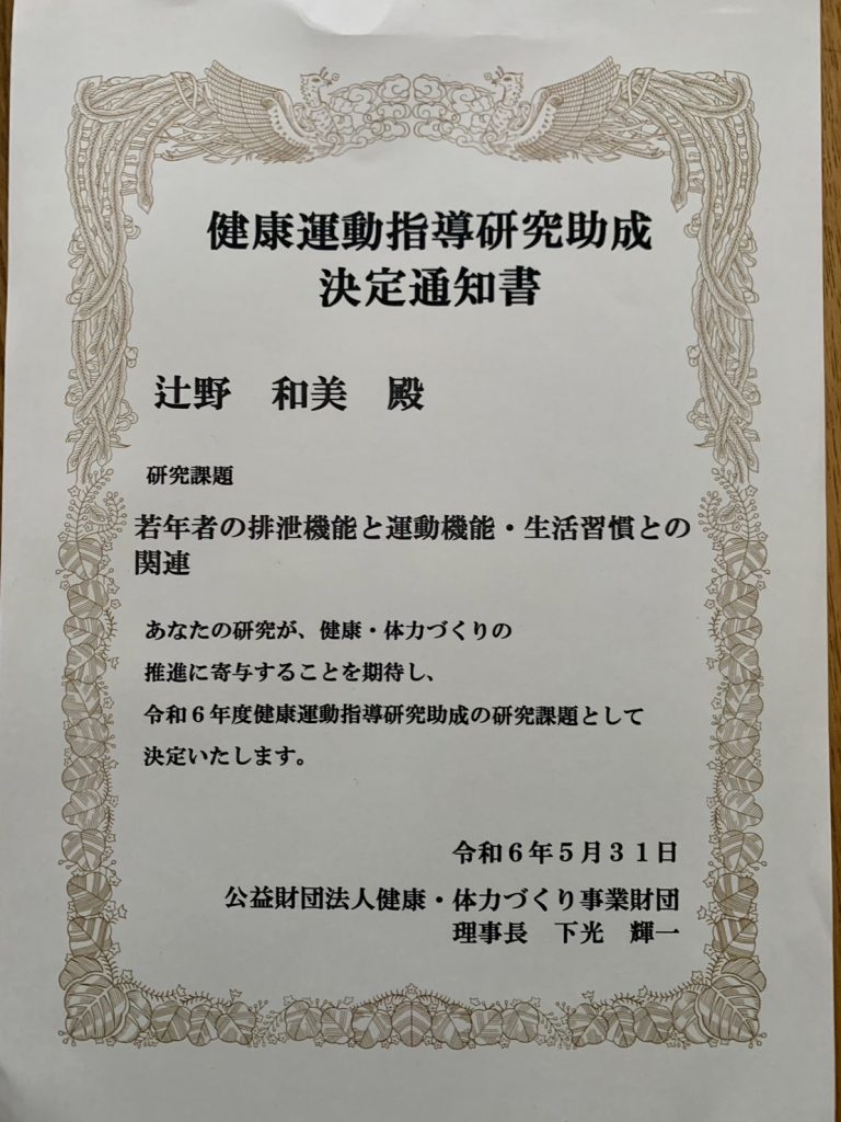 このたび公益財団法人健康・体力づくり事業財団「令和6年度健康運動指導研究助成」に採択いただきました。